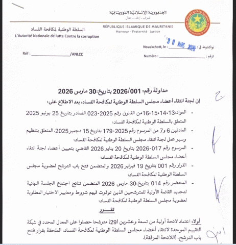 لجنة انتقاء أعضاء السلطة الوطنية لمكافحة الفساد تعتمد اللائحة الأولية للمترشحين