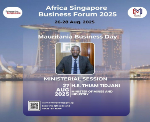 Le Ministre mauritanien des Mines et de l’Industrie TidjaniThiam sera l’un des conférenciers à la Session ministérielle de la Journée Mauritanienne des affaires conjointement organisée par Meen & Meen et Enterprise Singapore dans le cadre du Forum d’affaires Afrique-Singapour 2025.