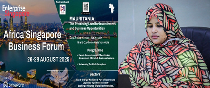 Singapour accueillera une journée dédiée à la Mauritanie le mercredi 27 août prochain, organisée dans le cadre des activités de la 8ème édition du Forum d'affaires Afrique-Singapour (ASBF 2025).