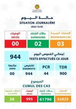 أعلنت وزارة الصحة تسجيل 03 إصابات جديدة بفيروس كورونا و02 حالة شفاء دون تسجيل أي حالة وفاة مرتبطة