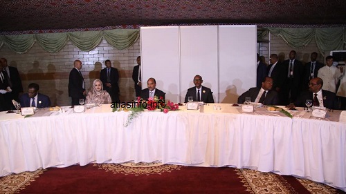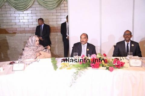 أقامت الرئاسة الموريتانية مساء اليوم السبت بالقصر الرئاسي في نواكشوط، مأدبة عشاء تحت الخيام، على شرف قادة الدول الافريقية والسيدات الأول المشاركين في القمة ال 31 لرؤساء دول وحكومات الاتحاد الافريقي وممثليهم وعدد من المدعوين.