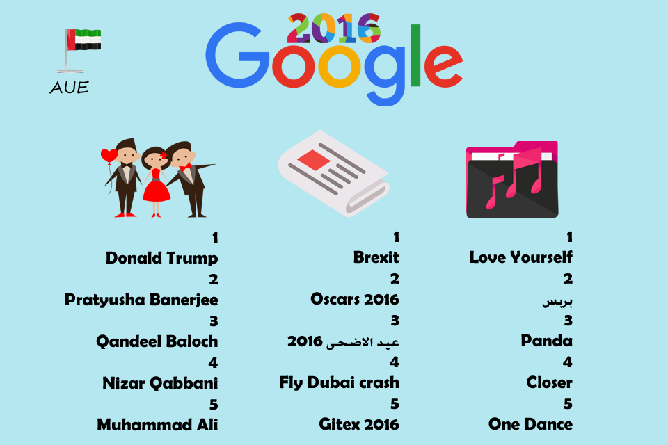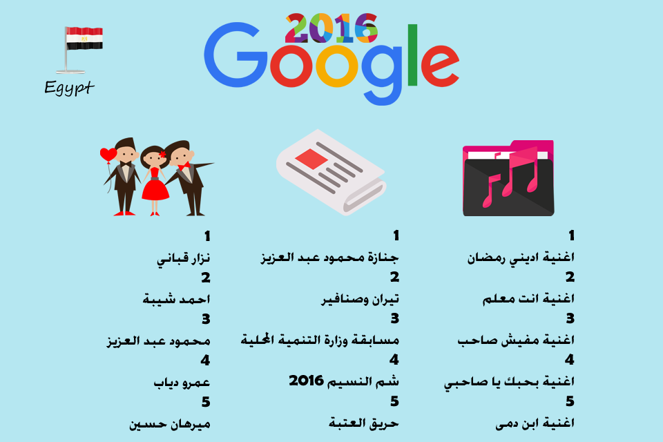 شهد العام 2016 أحداثا كثيرة وكبيرة، غير أن بحث المواطنين العرب عبر محرك "جوجل" لم تكن دائما بحجم الأحداث، وتراوحت بين السياسية والفن والرياضة في الغالب.