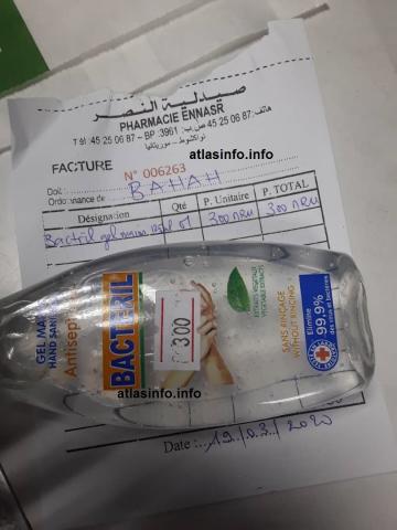 وأضاف المواطن إنه اشترى اليوم الخميس من صيدلية النصر "قنينة " تعقيم من فيئة ml 125 بثلاثة آلاف اوقية قديمة كما يظهر في الفاتورة المرفقة مع القنينة، متجاوزين بذلك قرار الوزارة القاضي بتحديد أسعار المعقمات في اطار الحملة المقام بها من طرف الحكومة للحد من انتشار فيروس كورونا.