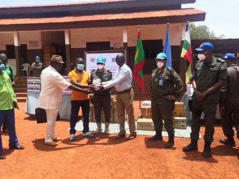في إطار تدخلاتها الاجتماعية والإنسانية، قدمت وحدة الدرك الوطني بمدينة ابريا العاملة تحت مظلة الأمم المتحدة بجمهورية وسط افريقيا (المينيسكا)، كميات معتبرة من الأدوية والمستلزمات الطبية لصالح المستشفي الجهوي لمدينة ابريا. وقد تم استلام هذه المساعدة من طرف حاكم المدينة محاطا بكل من مساعده ومدير المستشفى حيث جرت عملية التسليم وسط حضور رسمي وشعبي وحظيت بتغطية إعلامية مستفيضة من الصحافة المحلية وصحافة المنيسكا.