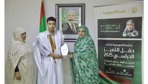 وكانت السيدة الأولى قد أشرفت مساء أمس الجمعة بالقصر الرئاسي في نواكشوط على حفل تكريم المتفوقين في الامتحانات الوطنية، بما في ذلك عدد من الطلاب من ذوي الهمم، في خطوة تستمر في تثمين جهودهم وإنجازاتهم.