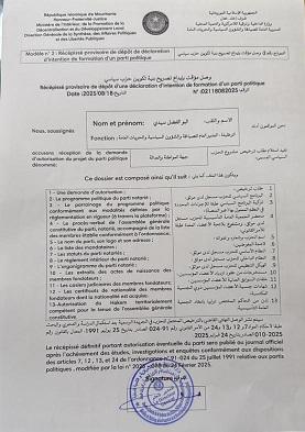 وقد تسلم مجموعة من الأحزاب على وصل ترخيص وهي: