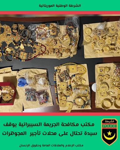 أعلنت الشرطة عبر صفحتها على الفيس بوك تمكن المكتب المركزي لمكافحة الجريمة السيبرانية من توقيف سيدة متهمة بالتورط في عمليات احتيال استهدفت عدداً من محلات تأجير المجوهرات في نواكشوط خلال الأسابيع الأخيرة.