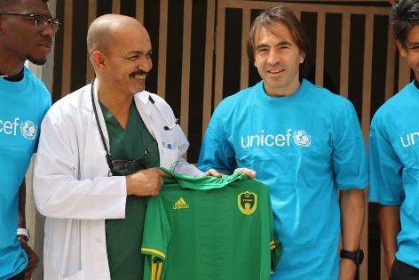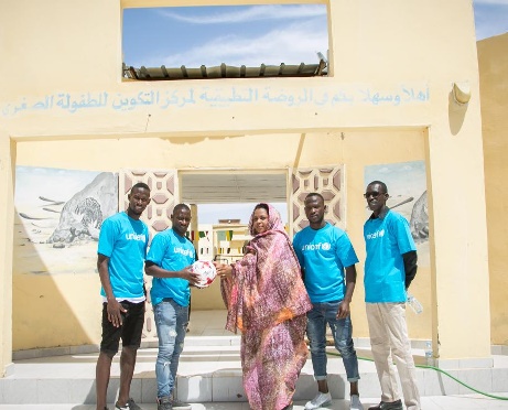 Ce Lundi 26 Mars, la sélection nationale de Football a effectué une visite des activités de l’UNICEF en Mauritanie. Un évènement qui marque le deuxième anniversaire du partenariat entre la Fédération de Football de la République Islamique de Mauritanie (FFRIM) et le Fonds des Nations Unies pour l’Enfance (UNICEF), signé en mars 2016.