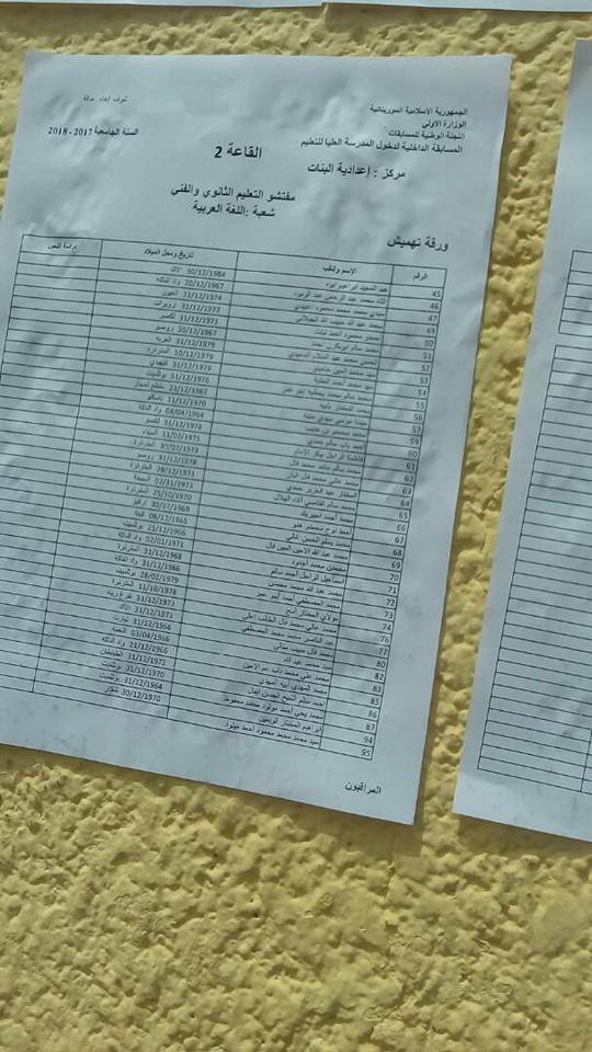 أعلنت المدرسة العليا للتعليم بنواكشوط عن مراكز امتحان مسابقة المفتشين التي من المنتظر أن تنظم غدا السبت وبعد غد الأحد وذلك على النحو التالي :