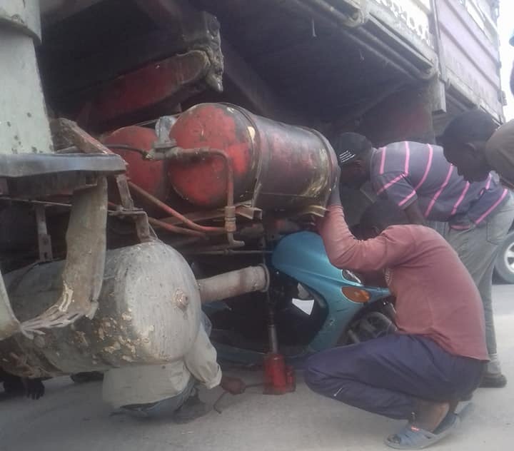 شهدت منطقة السفارة الامريكية الجديدة وسط العاصمة نواكشوط حادثا مروعا يوم أمس بين شاحنة كبيرة ودراجة نارية.