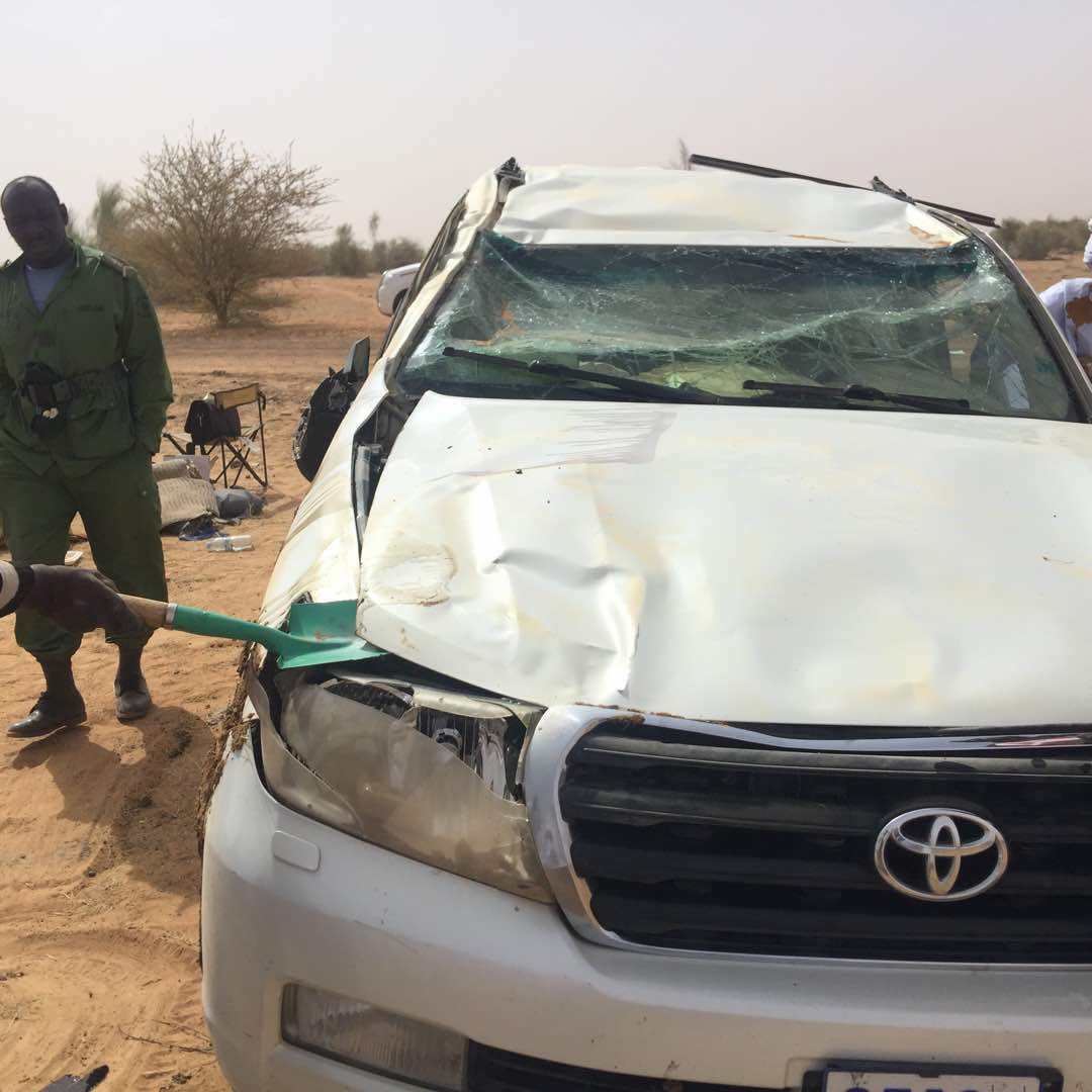 و بحسب بيان صادر عن الهيئة فإن البعثة التي تعرضت للحادث تضم "الأستاذ لي صايدو و توتو بنت أحمد جدوو الدكتور صال عثمان"، و قد تعرضت بنت أحمد جدو لجروح طفيفة.