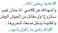 أعلنت ملكة جمال اليمن الشابة المحجبة الملتزمة "حنان غوبر" ،أنها ستتزوج أول مقاتل من الجيش اليمني أوالمقاومة الشعبية، يدخل العاصمة صنعاء مهما كان عمره أو شكله أو أصله.