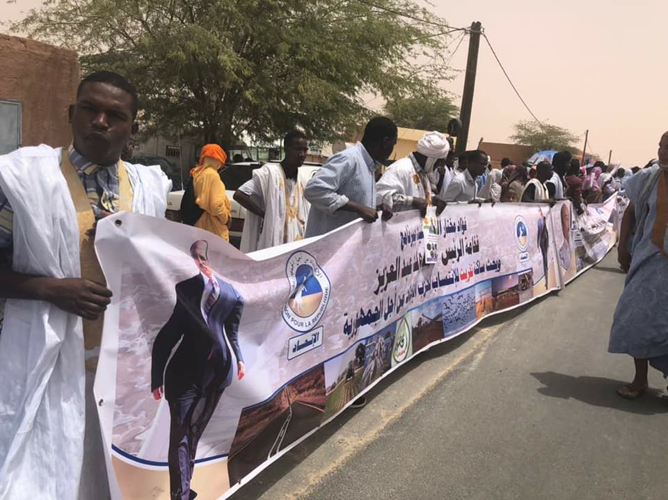احتشد المئات من أنصار المدير المساعد لديوان الوزير الأول فؤاد ولد المختار النش، بالإضافة إلى أنصار "حملة المطالبة بمأمورية ثالثة" التي يترأسها أحمدو ولد إياهي، زوال اليوم في قرية "تفيريت" الواقعة 25 على طريق الأمل شرقي انواكشوط لاستقبال رئيس الجمهورية محمد ولد عبد العزيز، حيث توقف بسيارته لمصافحة منظمي التجمع الجماهيري أثناء عودته من زيارة نظمها صباح اليوم لمركز التكوين على التقنيات الحيوانية في بلدة اديني بمقاطعة واد الناقة ...