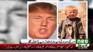ولفتت الصحيفة إلى أن القناة التلفزيونية الباكستانية الإخبارية، التي تحمل اسم “Neo News”، نشرت صورة طفل زاعمة أنه الرئيس “ترامب” في طفولته، ويظهر الطفل في الصورة وهو يرتدي الملابس البسيطة الاعتيادية في باكستان، بملامح تتقارب مع الرئيس.