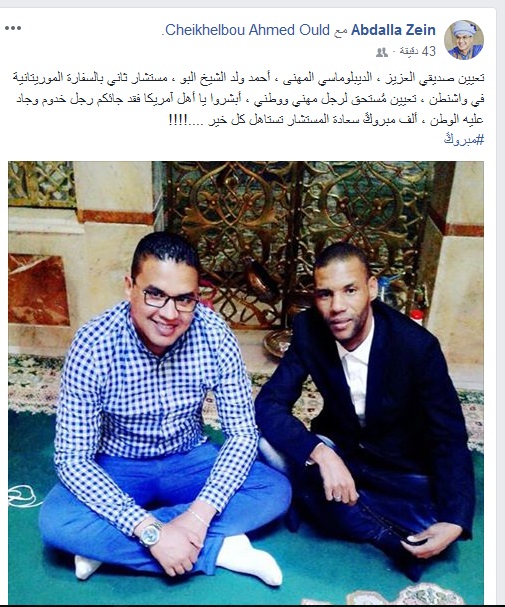 وقد وصف الدكتور عبد الله زين ـ المهتم بقضايا الدبلوماسية الموريتانية والذي نشر مرارا أخبارا حصرية في قضايا دبلوماسية مهمة على صفحته في موقع التواصل الاجتماعي فيسبوك ـ تدوينة جاء فيها :