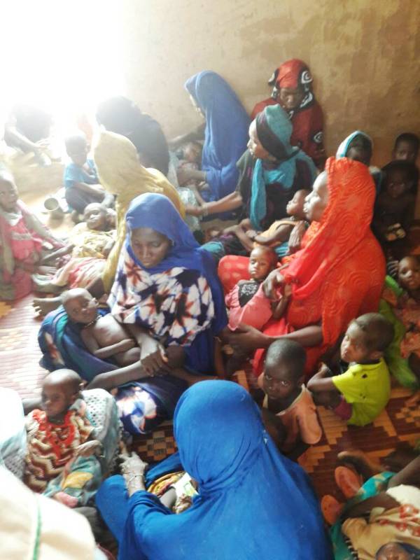 وتظهر الصور حجز البعثات الصحية التي وصلت القرية لعشرات الأطفال وأمهاتهم في مكان خاص، حيث لا يوجد في القرية مركز صحي، وأقرب مركز صحي لها يقع في قرية تسمى "أم اظيلميم" على بعد 15 كلم منها.