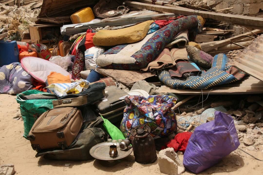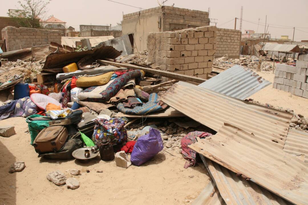 وقالت السيدة / خادمة بنت محمد المصطفى انها تسكن في القطعة التي هدمت امام اعينها منذ سقوط الطائرة بالمرحوم ولد بسيف سنة 1979 وليس لديها ولد ولا أحد يعيلها أو يعينها سوى أهل الخير والفضل من الجيران فهم من يتولون رعايتها ,وقد أصبحت الآن تسكن في العراء دون ستار يقيها حر لهيب الشمس الحارق.