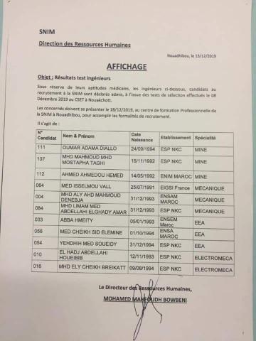 أعلنت الشركة الوطنية للصناعة والمناجم "اسنيم" عن نتائج المسابقة التي نظمتها لاكتتاب عدد من المهندسين. وأعلنت الشركة عن نجاح 11 مهندسا، كما أظهرت النتائج تفوق طلاب المدرسة العليا المتعددة التقنيات. اسنيمنتائجمسابقةالمهندسين