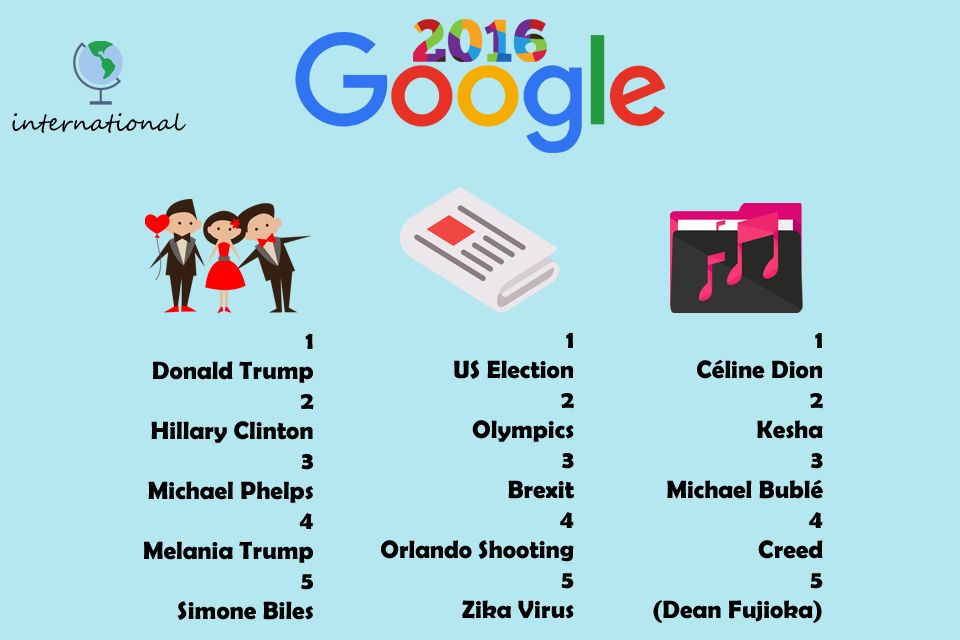 شهد العام 2016 أحداثا كثيرة وكبيرة، غير أن بحث المواطنين العرب عبر محرك "جوجل" لم تكن دائما بحجم الأحداث، وتراوحت بين السياسية والفن والرياضة في الغالب.