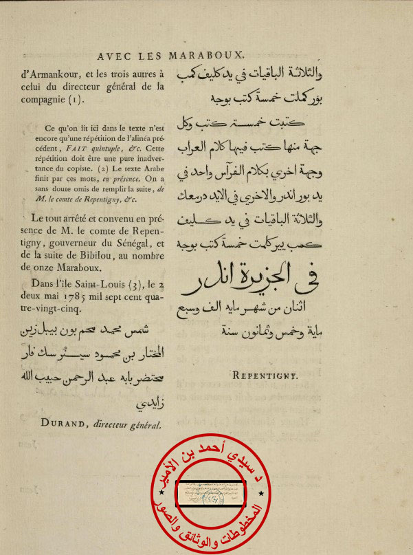 وقد كتب الاتفاقيتين الموقعتين مع الشمس أحمد ميلود حماد بن انداي آن (اندَيَانْ) وهو جد أولاد أبنُ المقداد من الأم كما أنه صهر وزير البراكنة الترجمان الشهير المختهار انجاك كما رأينا في النص الخاص بوثائق إمارة البراكنة.
