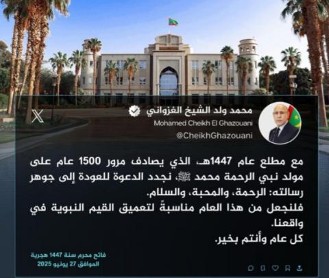 هنأ رئيس الجمهورية السيد محمد ولد الشيخ الغزواني الشعب الموريتاني بحلول العام الهجري الجديد.