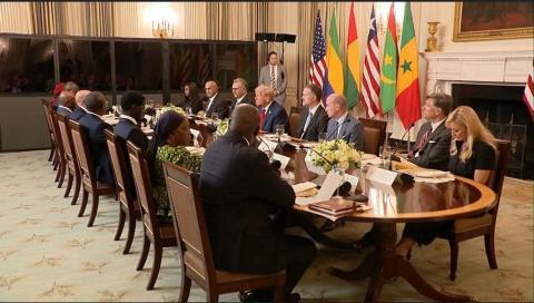 وجمع ترامب على طاولة مستديرة كلا رؤساء موريتانيا محمد ولد الشيخ الغزواني، والسنغال بصيرو ديوماي فاي، وغينيا بيساو عمر سيسوكو إمبالو، وليبيريا جوزيف بواكاي، إضافة إلى رئيس الغابون بريس أوليغي أنغويما.