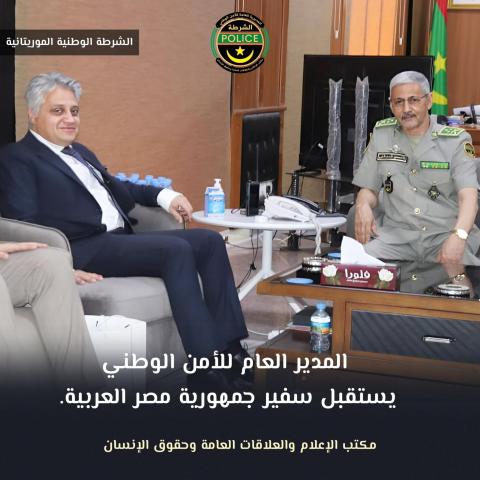 استقبل الفريق محمد الشيخ ولد محمد الأمين ألمين المدير العام للأمن الوطني صباح اليوم الخميس 31 يوليو 2025، بمكتبه سعادة د. أحمد طايع سفير جمهورية مصر العربية المعتمد لدى بلادنا