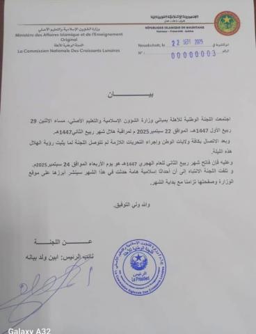 وبعد الاتصال بكافة ولايات الوطن وإجراء التحريات اللازمة لم تتوصل اللجنة لما يثبت رؤية الهلال هذه الليلة.