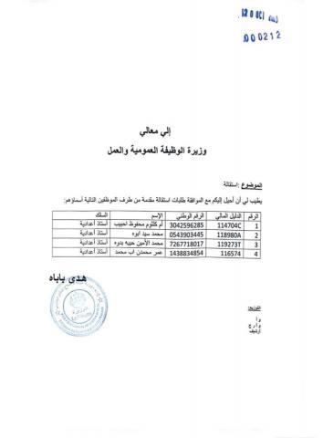 وأحالت وزارة التربية طلب استقالة الأساتذة الأربعة مرفقا بأسمائهم، إلى وزارة الوظيفية العمومية، لبدء إجراءات فصلهم، بعد الموافقة على استقالتهم.