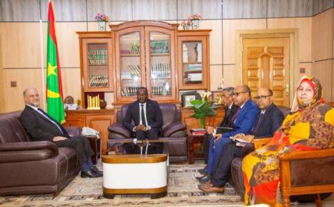 وحضر الاجتماع الأمين العام لوزارة العدل محمد أحمد عيده، والمستشار المكلف بالتعاون والمتابعة والتقييم أعمر القاسم، والمستشارة المكلفة بالنفاذ إلى العدالة والاتصال منت أحميد بنت التكرور، ومدير التعاون والتعاون القضائي البيني الحسين الشيخ كبادي.