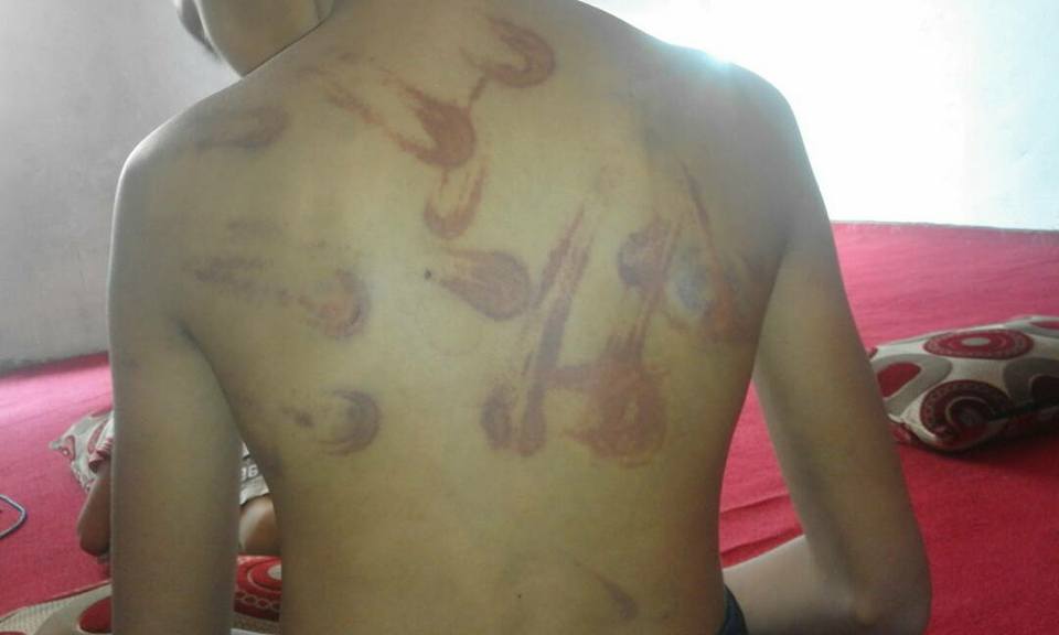 وقد نشر المدون احمد أبو المعالي على صفحته في الفيسبوك صورا للطفل الضحية تُظهر جانبا من الاصابات التي لحقت به جراء التعذيب.