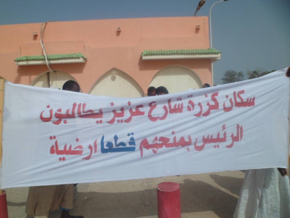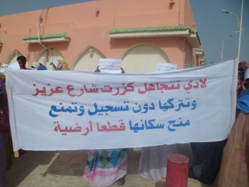 تظاهرت سيدات أمام القصر الرئاسي صباح اليوم , وكن يحملن لافتات مكبرة تعبر عن مطالبهن الموجهة لرئيس الجمهورية السيد/ محمد ولد عبد العزيز والمتعلقة بتلاعب الهيئة الحضرية بأراضيهن التي يعشن فوقها منذ عشرات السنين وتحاول "لادي" الآن تحويلها إلى ما يسمى بالقطع "البيضاء" التي تتم مصادرتها.