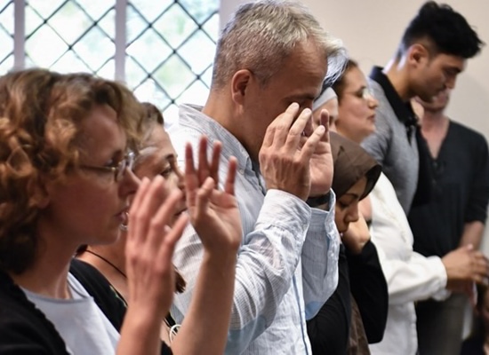 بعدها تستهل امرأة أخرى هي المحامية الألمانية-التركية سيران اتيس (54 عاماً) بعباءتها البيضاء وشعرها القصير المكشوف، صلاة الجمعة بعبارات ترحيب بالمصلين.