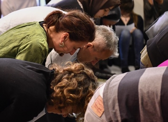 أما المصلون الذين احتشدوا جنباً إلى جنب نساءً ورجالاً وقد ركع كل منهم على سجادة صلاة فردية خضراء فيسجدون باتجاه القبلة أمام عدسات المصورين وتحت أنظار مسيحيين ويهود تمت دعوتهم إلى هذه الصلاة الافتتاحية التي أثارت عاصفة من ردود الفعل على الانترنت.