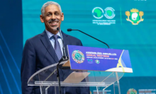 تسلم الاقتصادي الموريتاني الدكتور سيدي ولد التاه، مهامه رئيساً للبنك الإفريقي للتنمية، خلال حفل ر